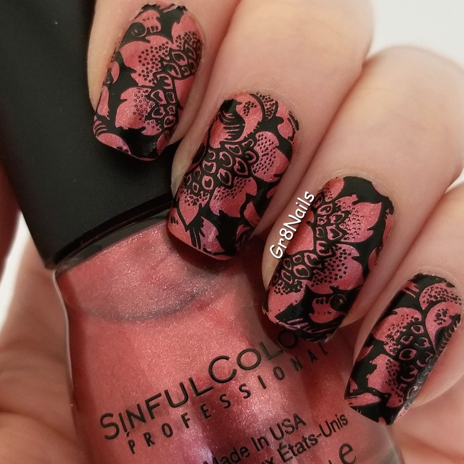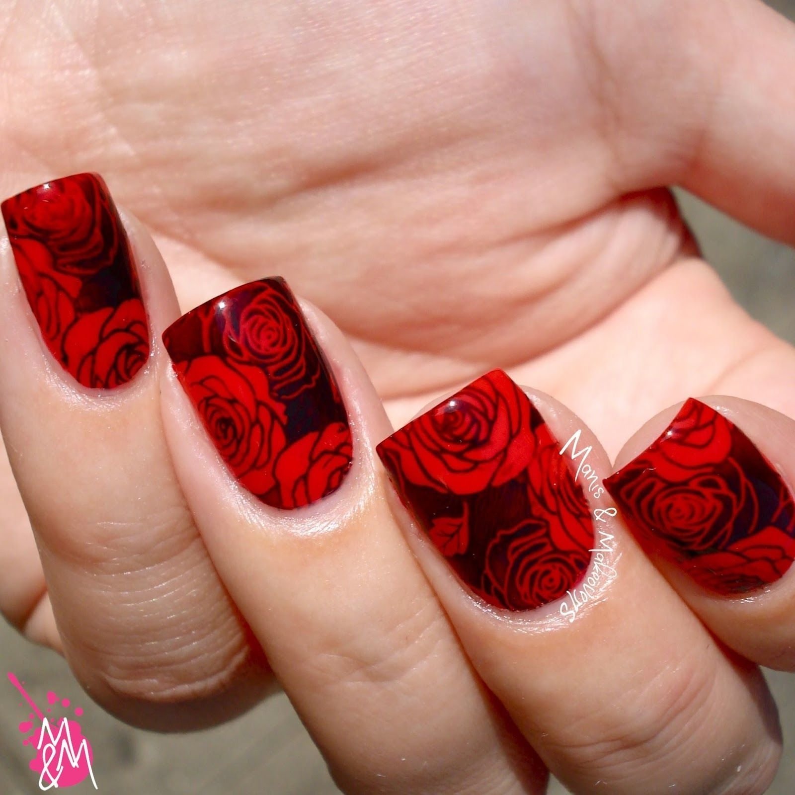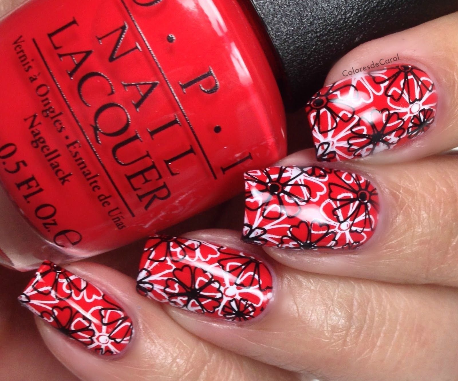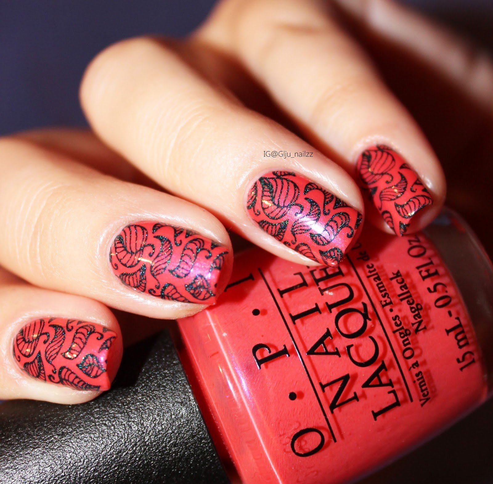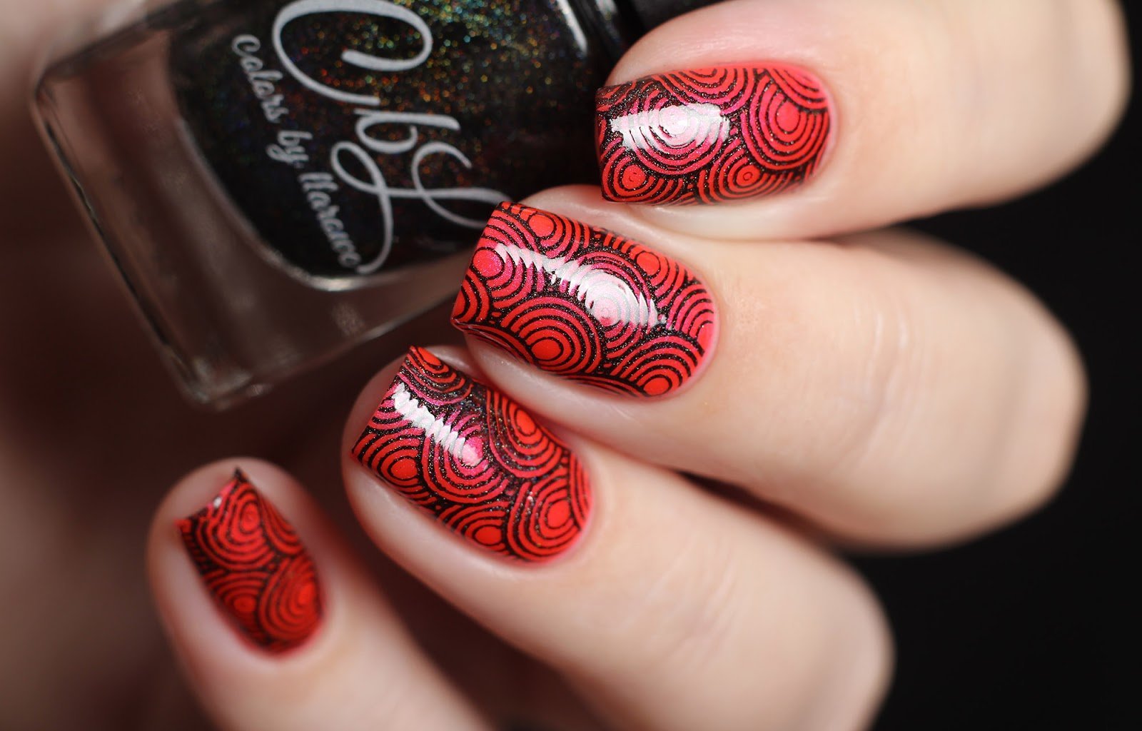 ![Красный лак со стемпингом]()