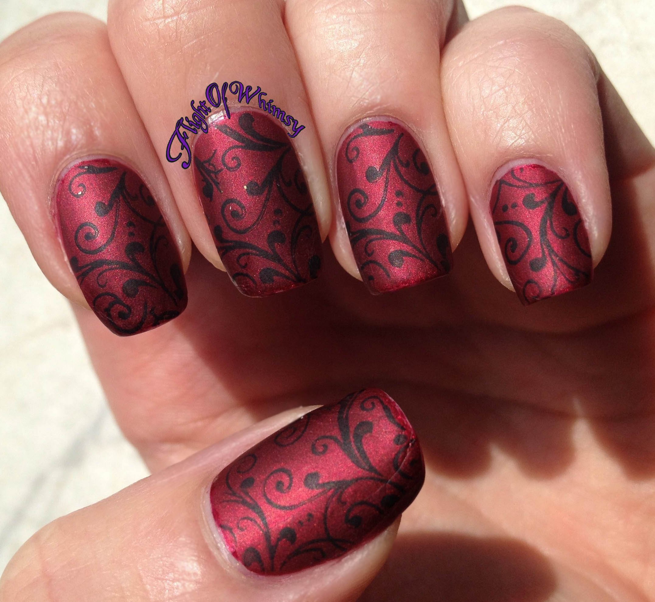 Стемпинг на бордовом лаке
