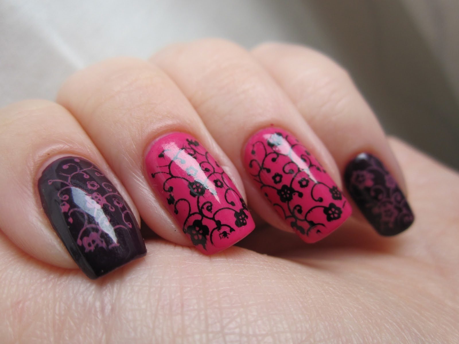 ![Стемпинг на бордовом лаке]()