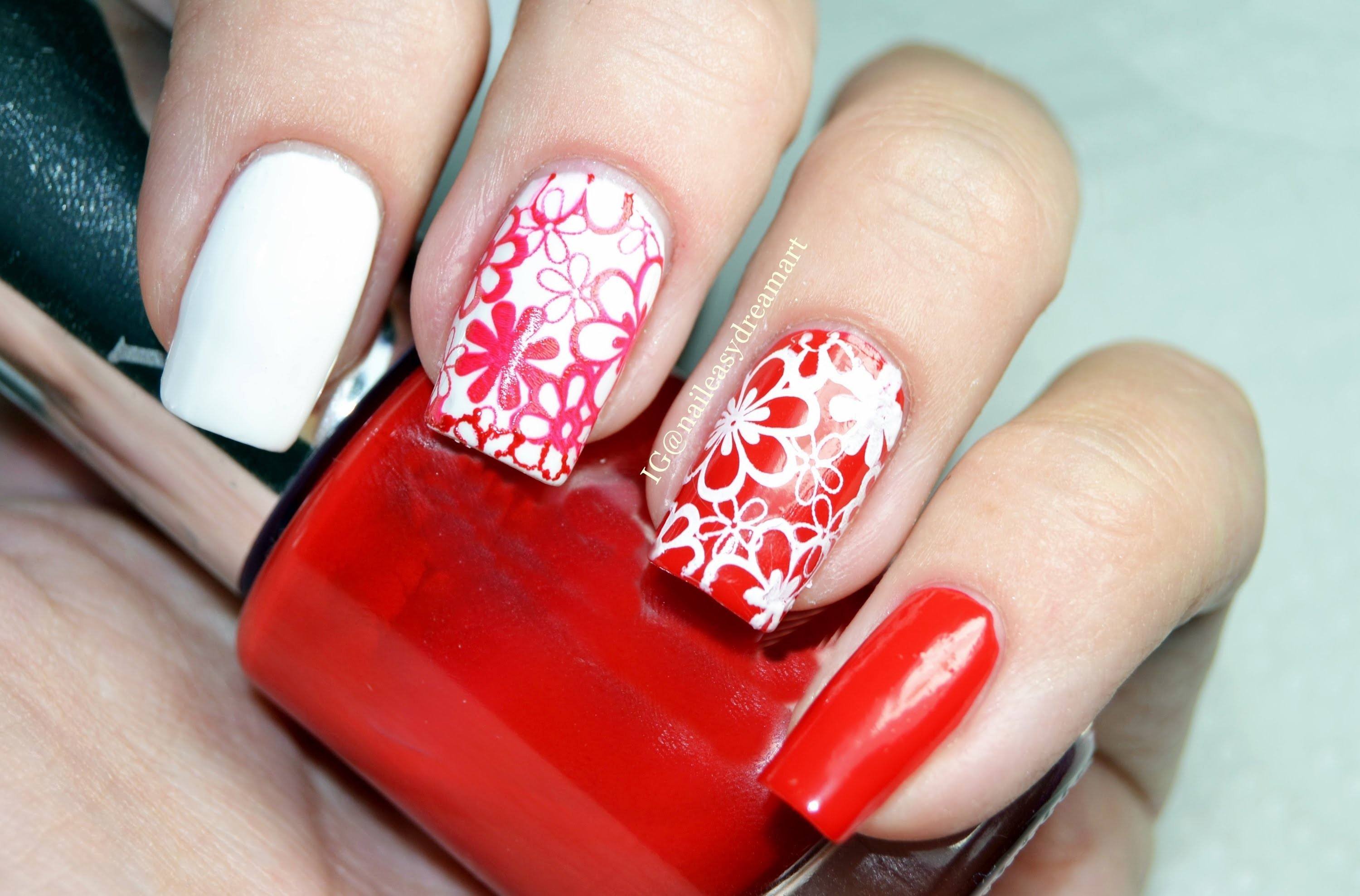 Красно белый маникюр стемпинг