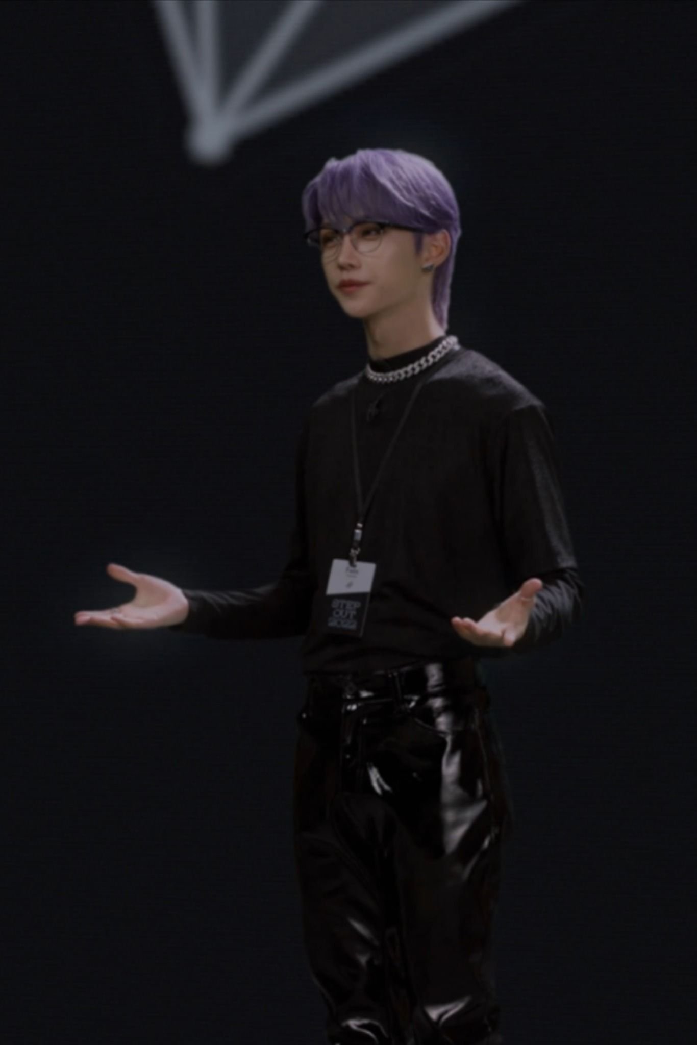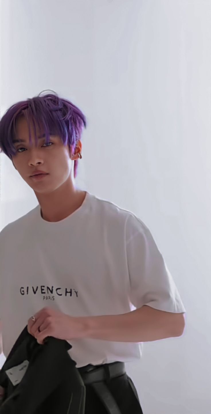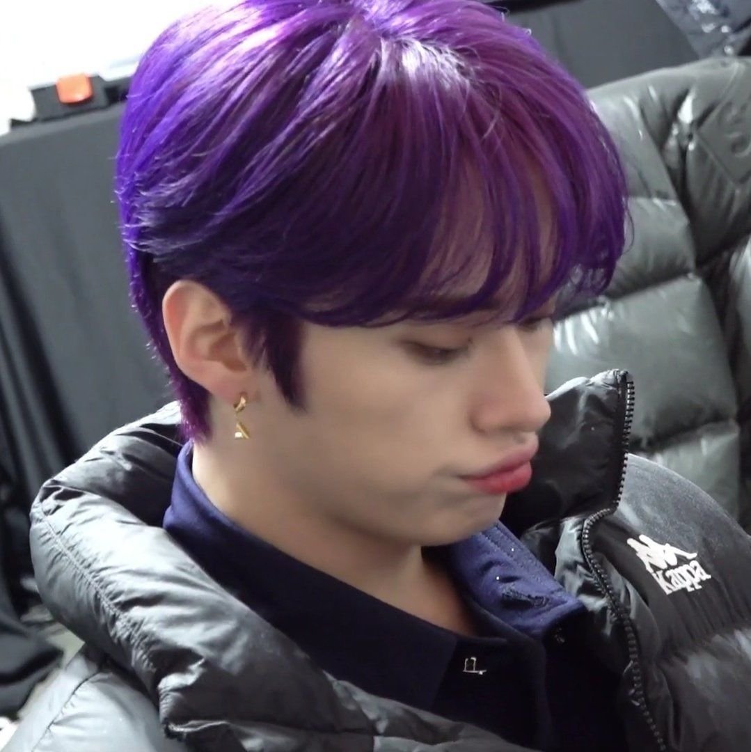 Взгляни на эту захватывающую фотографию: стрей кидс с фиолетовыми волосами! Этот яркий и необычный образ привлекает внимание и выделяет его из толпы. Фиолетовые волосы придают ему индивидуальность, экстравагантность и неповторимый стиль.