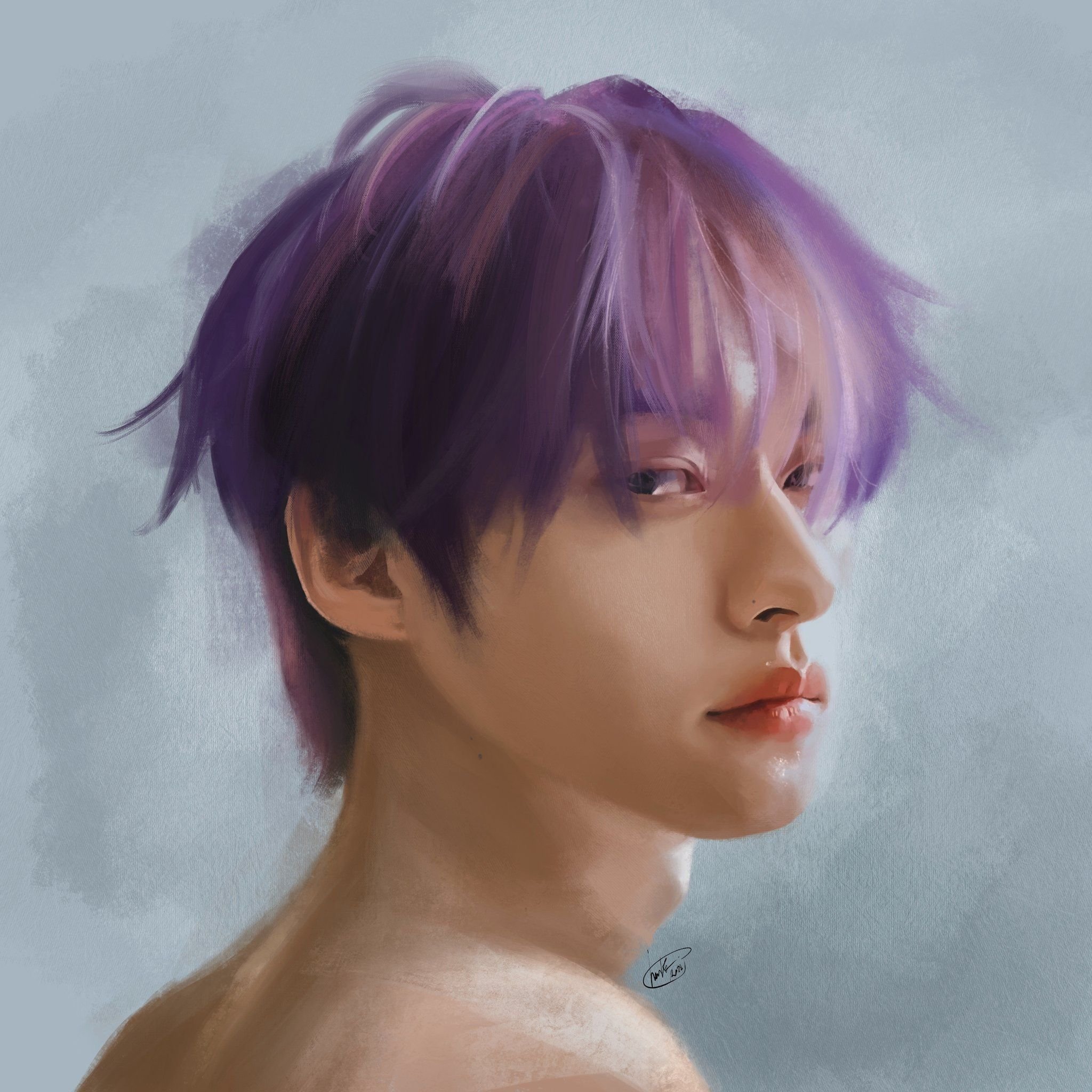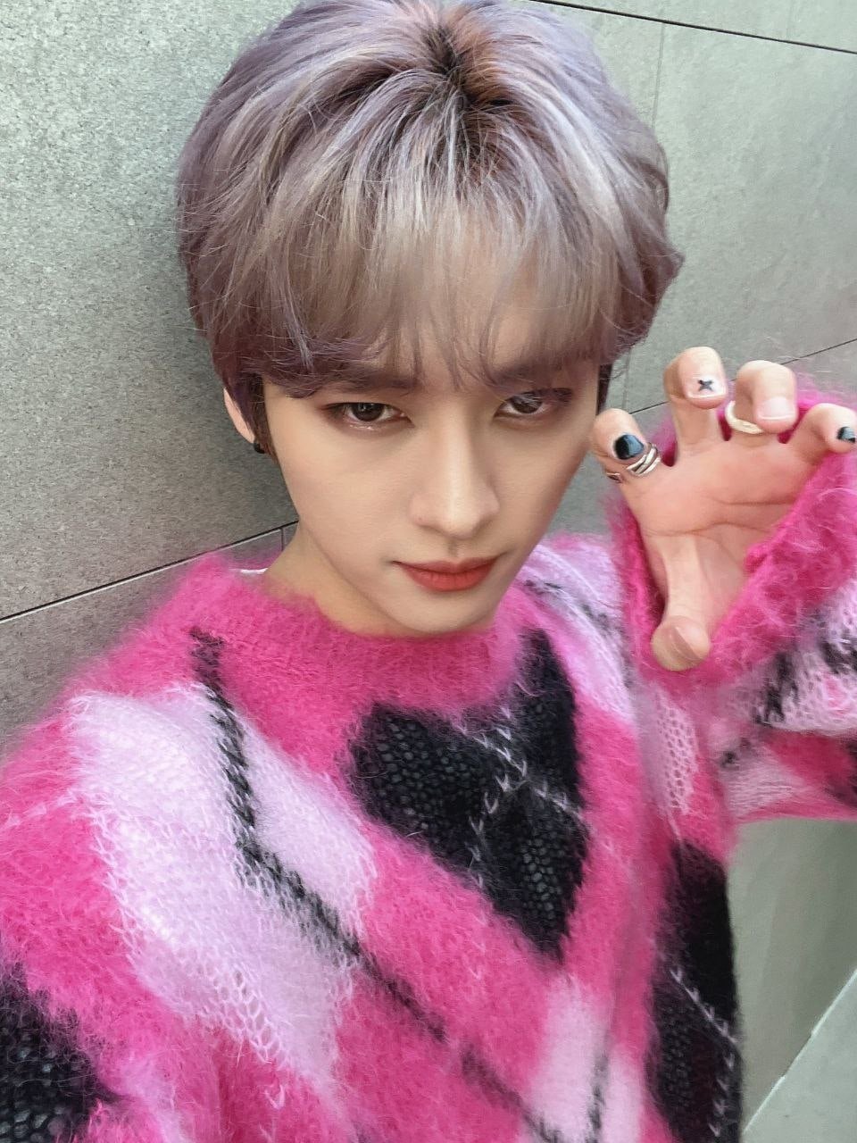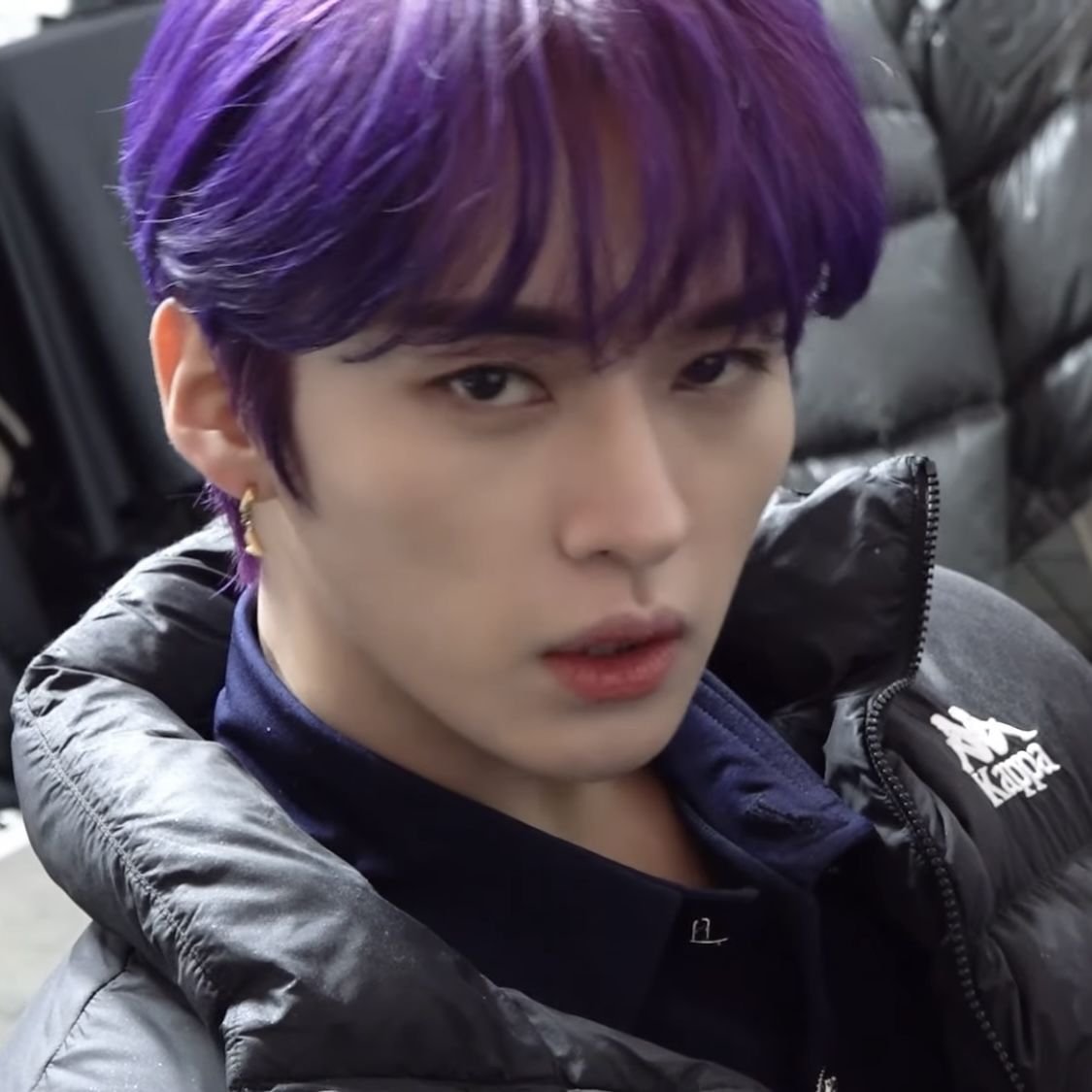 Взгляни на эту захватывающую фотографию: стрей кидс с фиолетовыми волосами! Этот яркий и необычный образ привлекает внимание и выделяет его из толпы. Фиолетовые волосы придают ему индивидуальность, экстравагантность и неповторимый стиль.