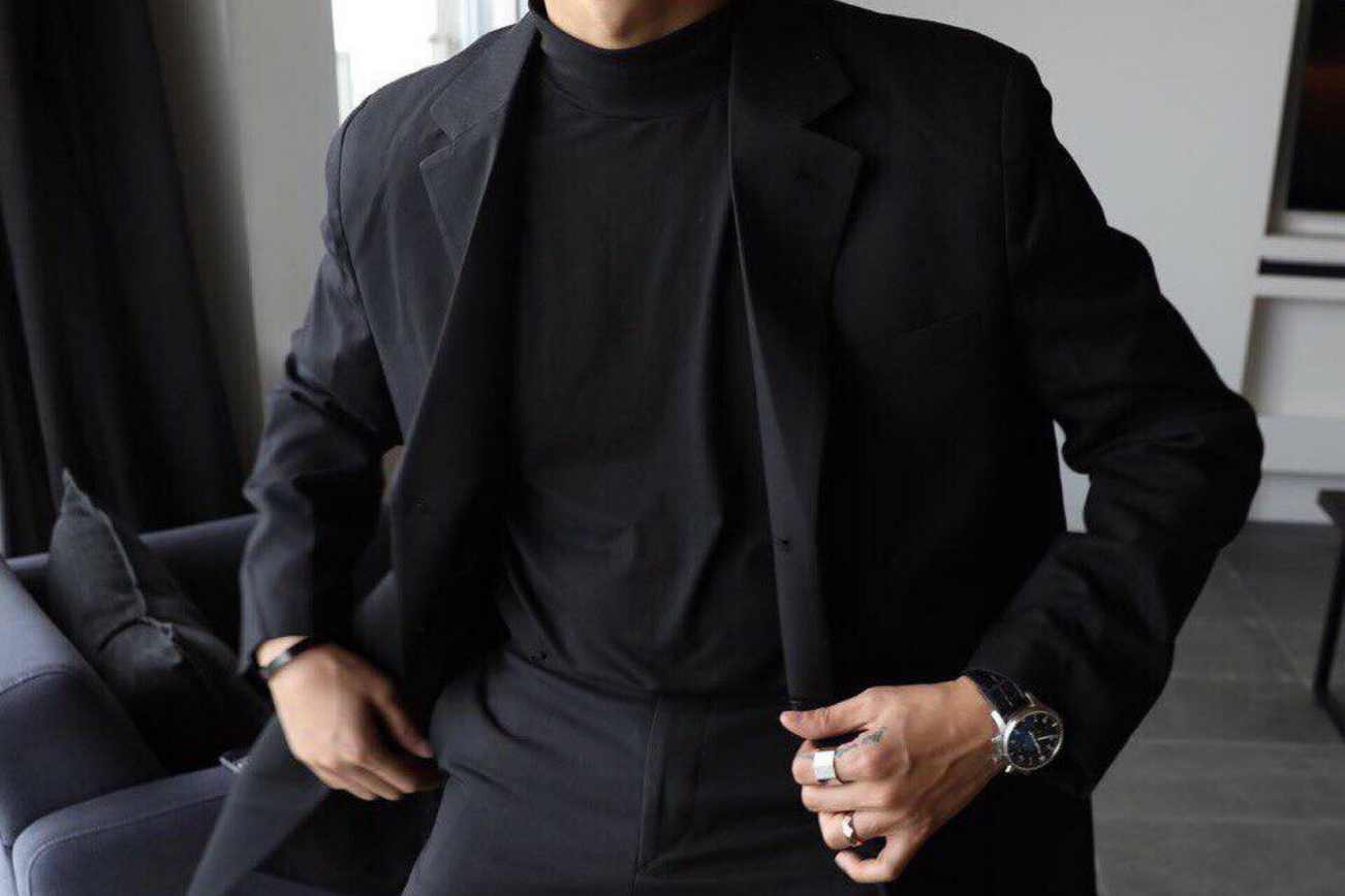 Мужчина в черной рубашке и черных брюках