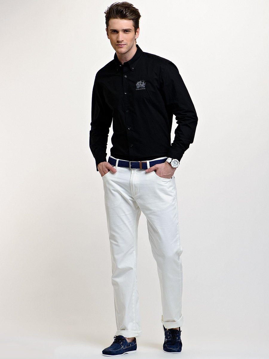На этом фото запечатлен настоящий мужчина в черной рубашке и элегантных черных брюках. Его стильный образ не оставит равнодушным ни одного ценителя моды. Черная рубашка, которую он выбрал для своего образа, добавляет ему загадочности и таинственности. Она словно покров, скрывающий его настоящие чувства и эмоции. Брюки же, выполненные из качественного материала, отлично сидят на его фигуре, подчеркивая стройность и грациозность движений.