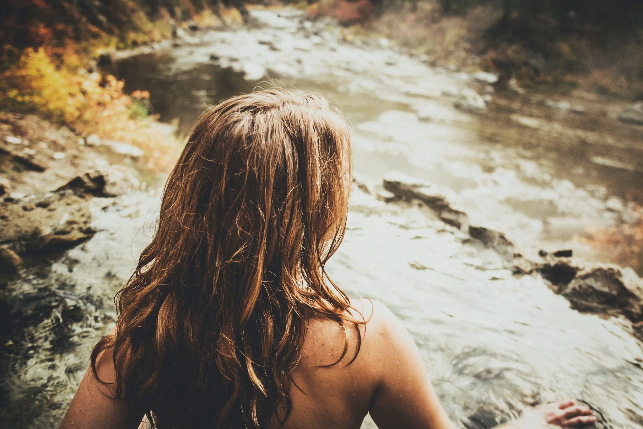 Девушка с распущенными волосами со спины