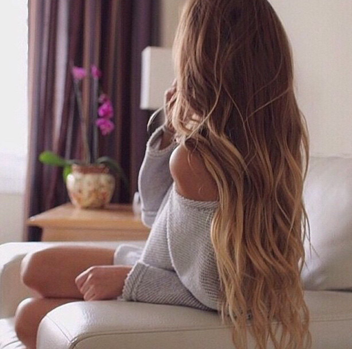 ![Девушка с длинными волосами со спины]()