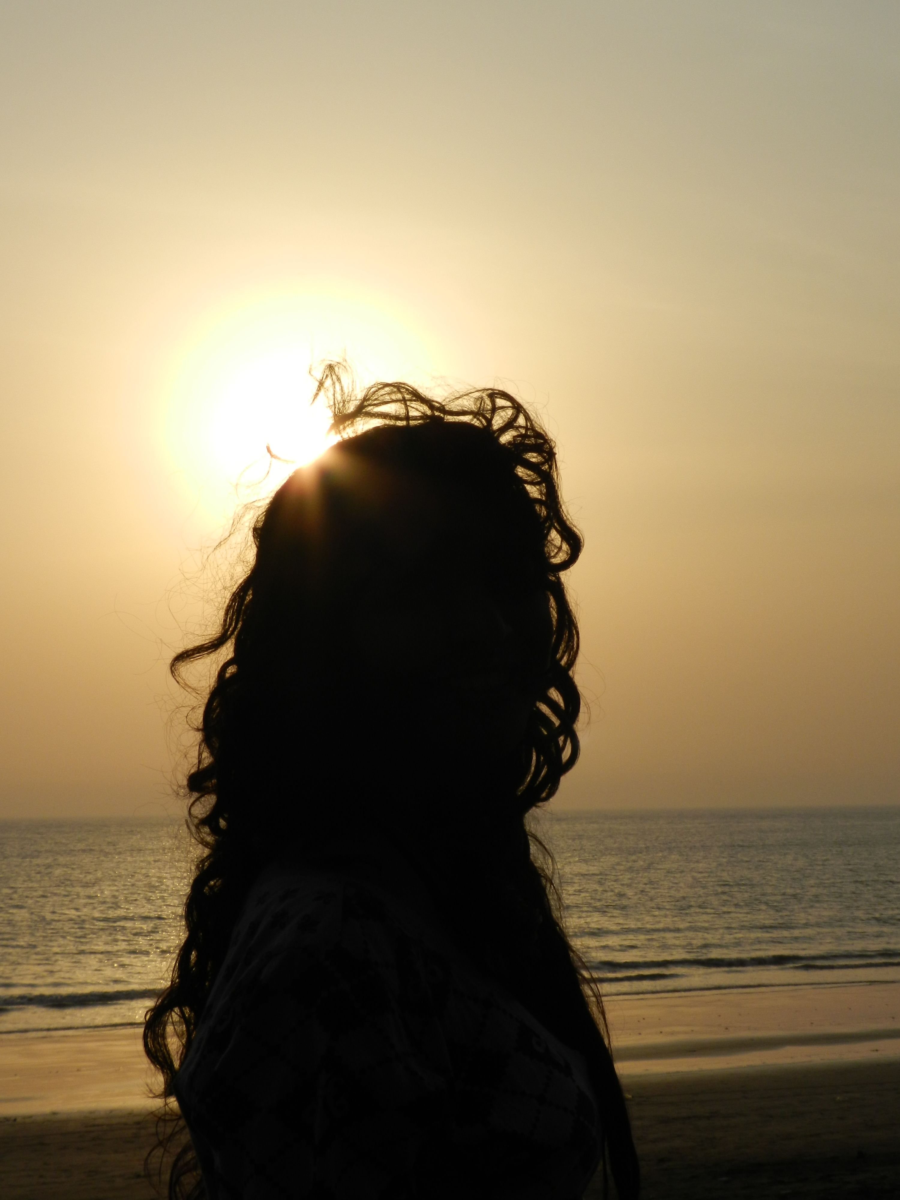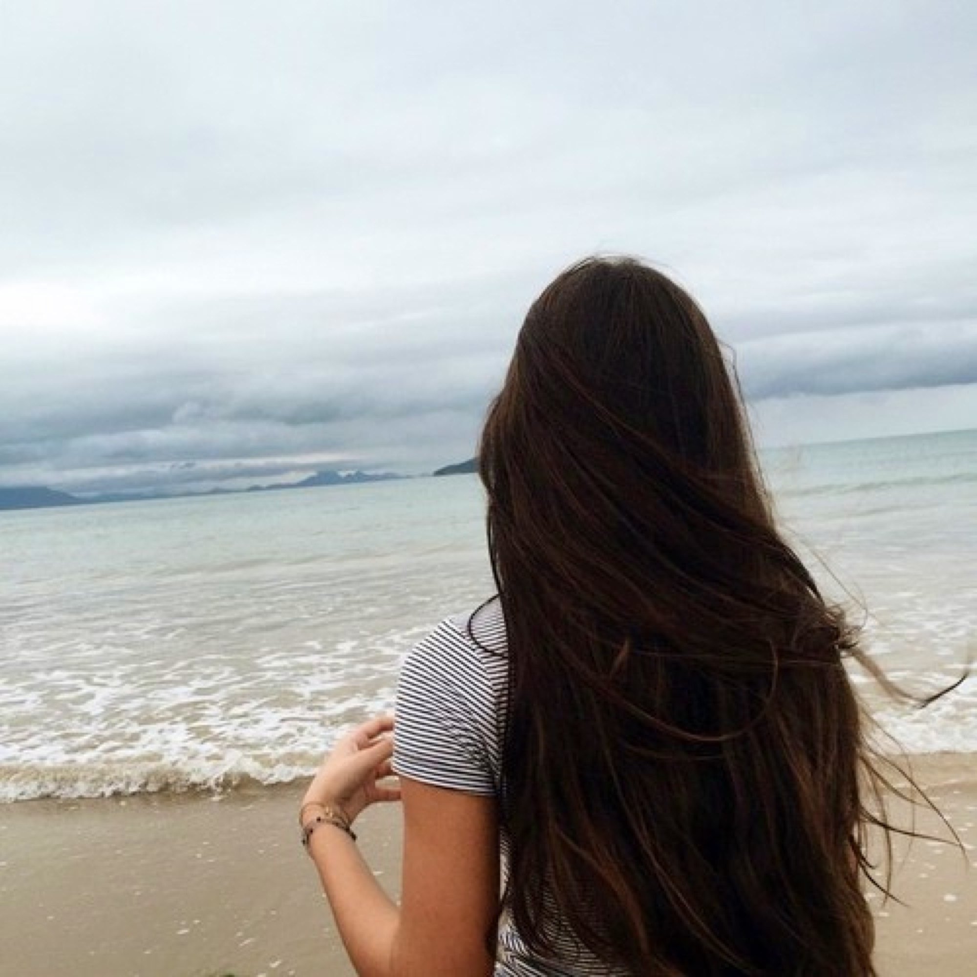 ![Девушка с черными волосами на море]()