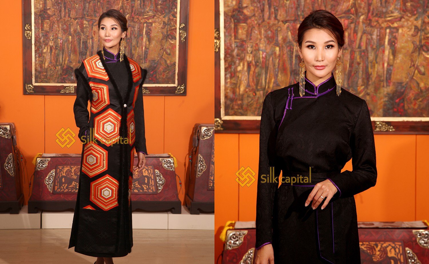 ![Стилизованные платья в монгольском стиле]()