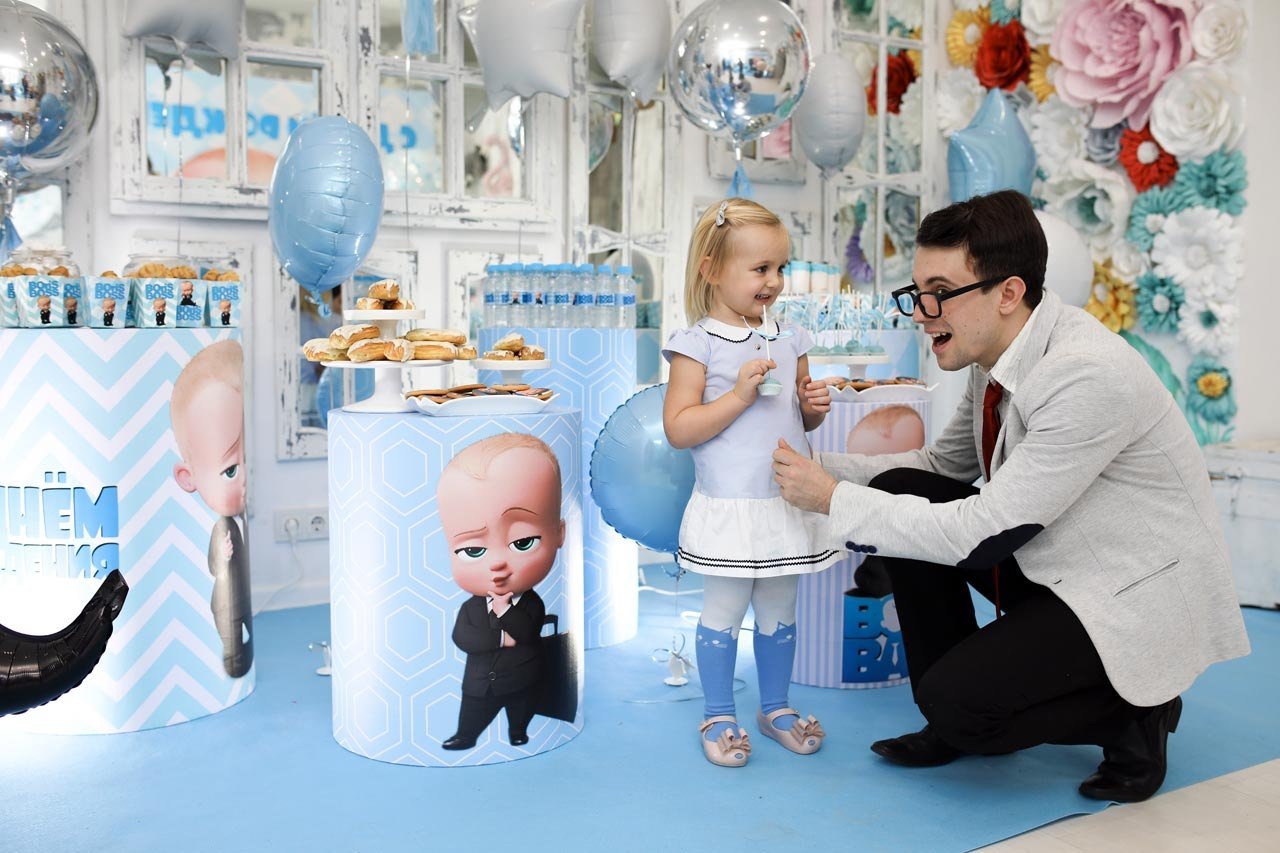 На этой фотографии мы видим веселую и яркую сцену - маленького босса молокососа, который окружен своей командой. Он выглядит таким уверенным и полным энергии, что невозможно устоять перед его обаянием.