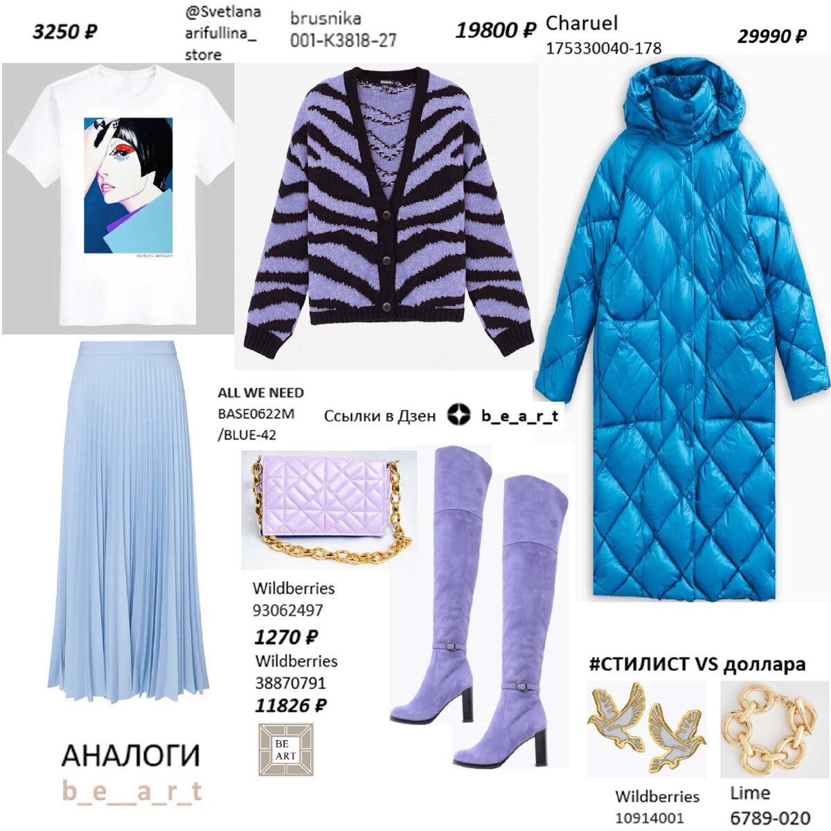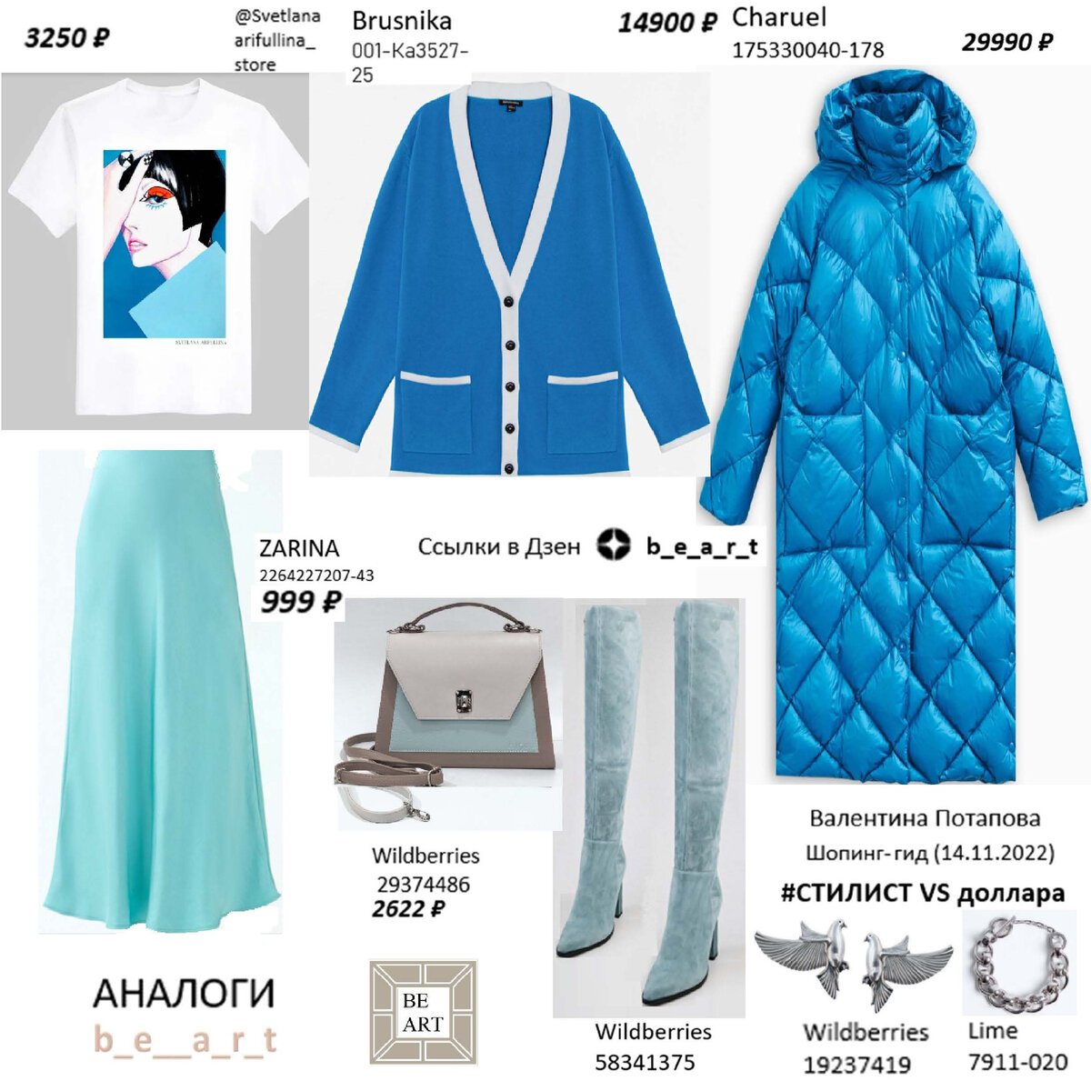 Второй образ - это элегантная и утонченная комбинация, включающая голубой пуховик, черные брюки и белую блузку. Этот наряд будет идеальным выбором для деловых встреч или особых случаев, когда требуется безупречный стиль и шик.