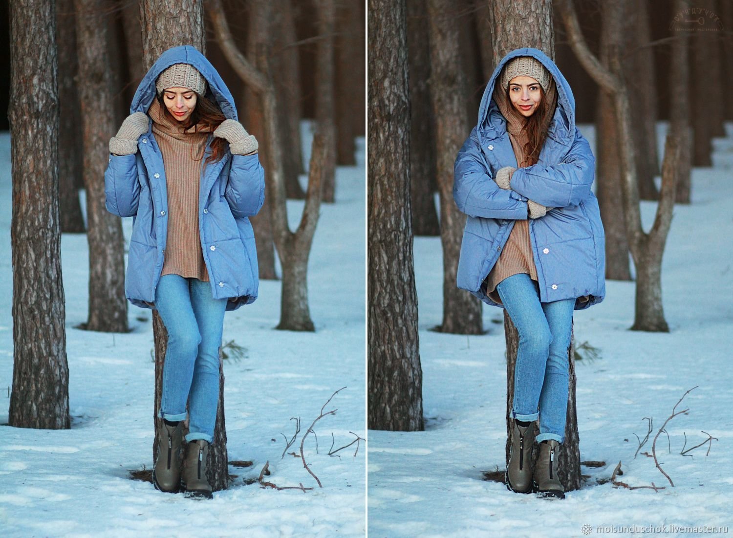 На этой фотографии изображены образы с голубым пуховиком, которые гарантировано привлекут ваше внимание. Голубой цвет пуховика создает ощущение свежести и легкости, что делает его идеальным выбором для стильного и модного образа.