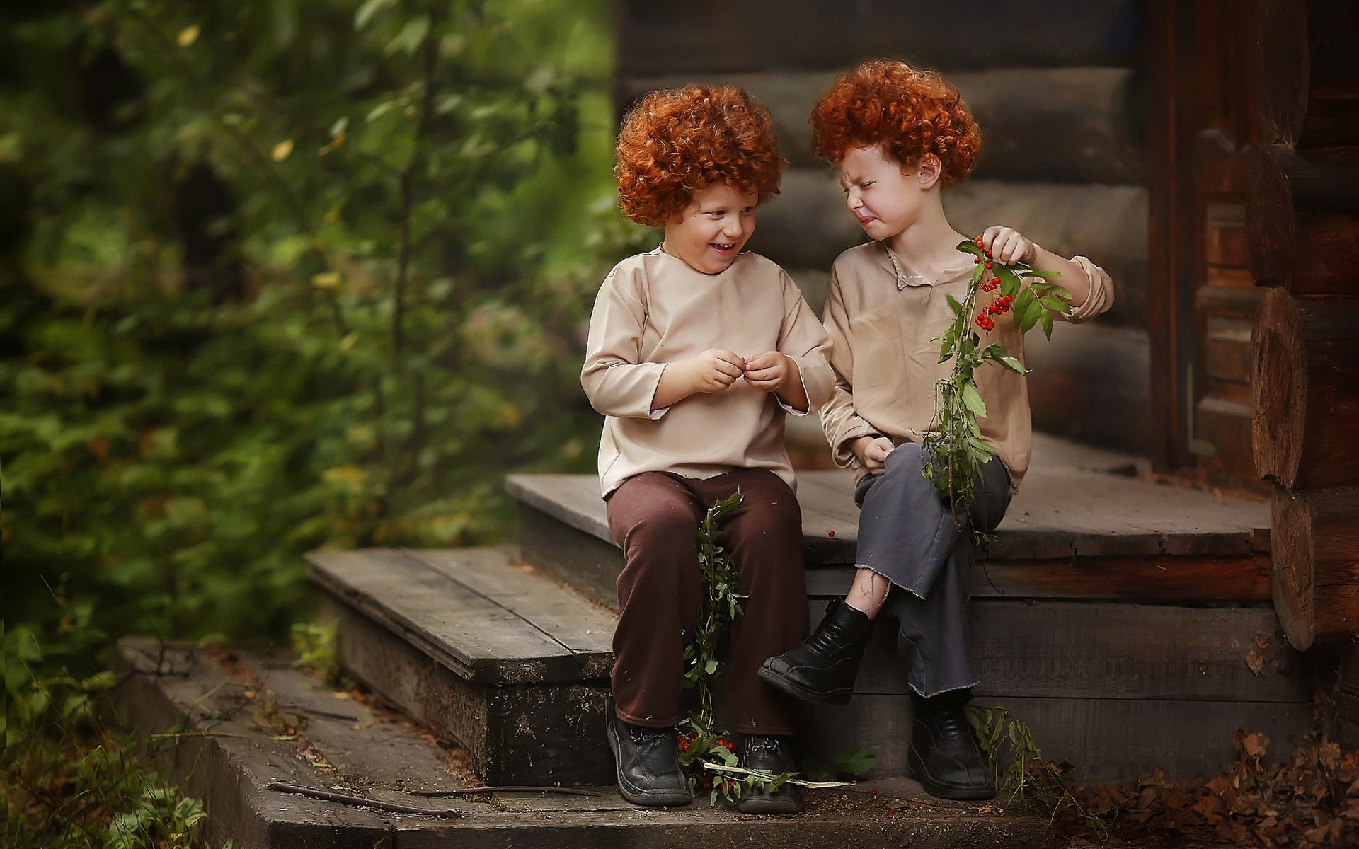 На этой фотографии запечатлены двое очаровательных детей – рыжий мальчик и девочка. Их яркие волосы привлекают внимание и добавляют им особенного шарма. Под золотистым солнцем, они выглядят словно огоньки, сверкающие на фоне сказочного леса.