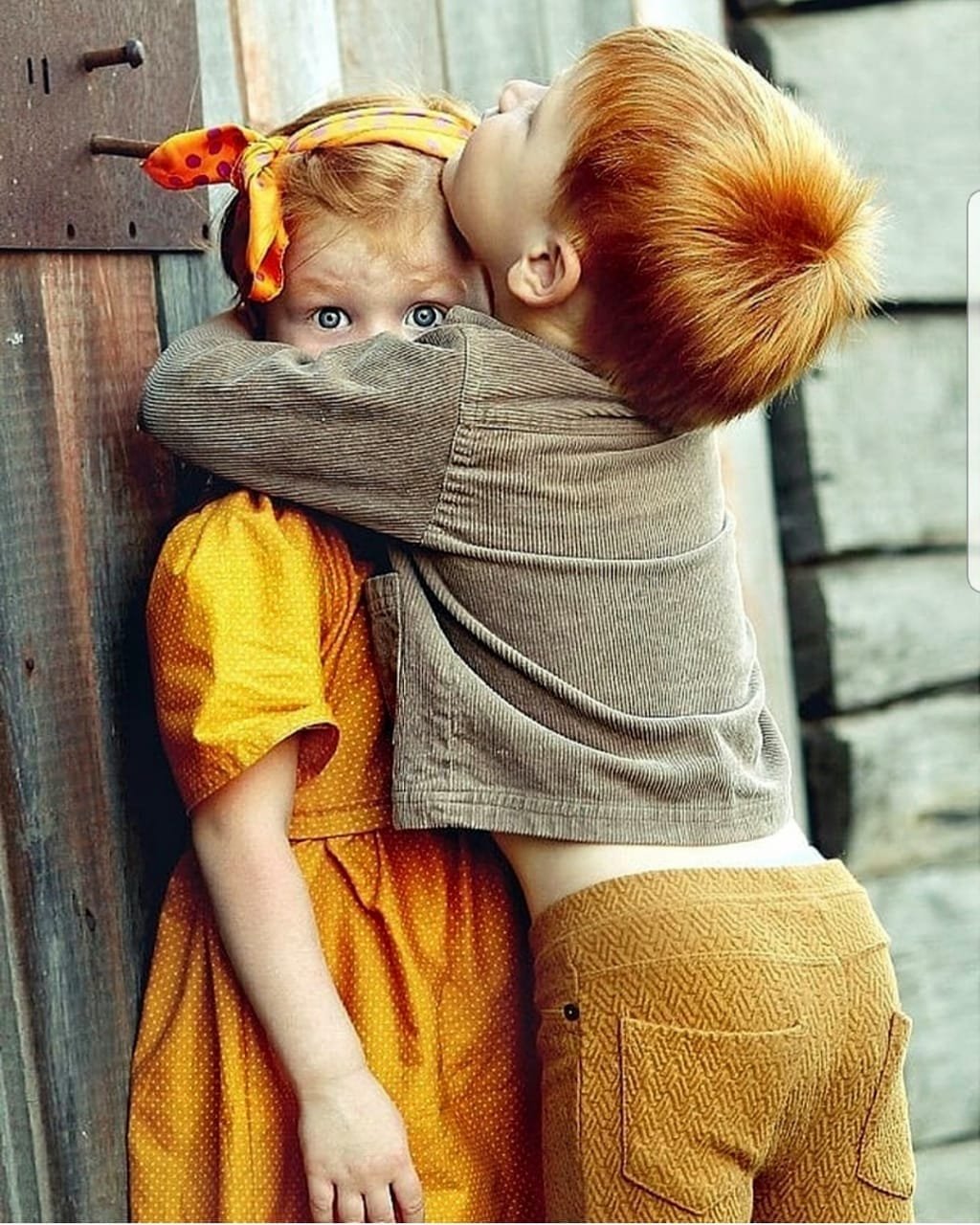 Девочка рядом с ним также обладает прекрасными рыжими волосами, которые подчеркивают ее нежность и изящество. Рыжий цвет волос придаёт ей загадочности и таинственности, словно она принцесса из сказки, способная завоевать сердца всех вокруг.