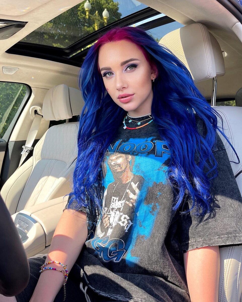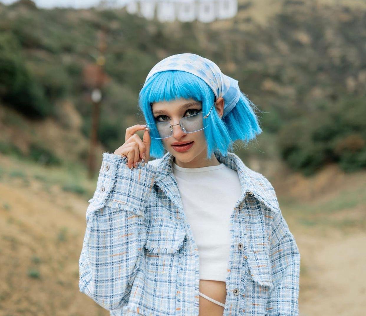 Фотография синеватых волос звезд определенно заслуживает особого внимания. Она как будто переносит нас в другое измерение, где царит свобода самовыражения и непредсказуемость.