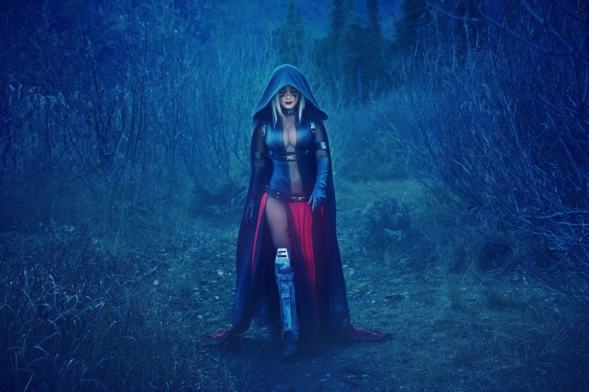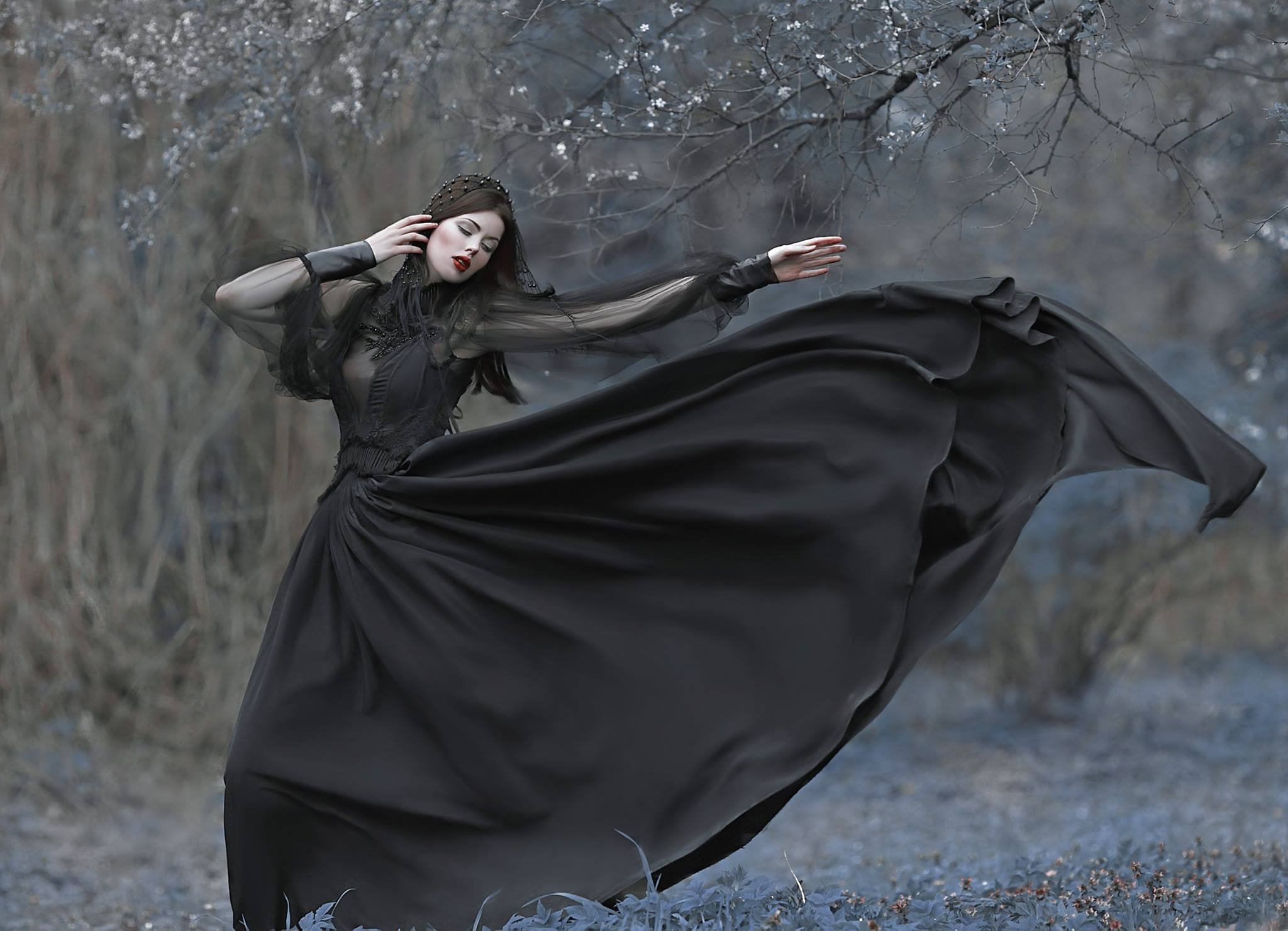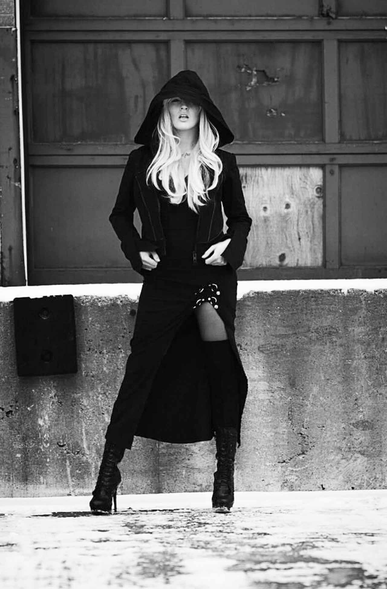 В любом случае, девушка в черном плаще заставляет нас задуматься о том, что может скрываться за ее загадочной внешностью. Она притягивает наше внимание, а данная фотография - подтверждение высокого мастерства фотографа, который смог запечатлеть не только образ, но и настроение этой загадочной личности.