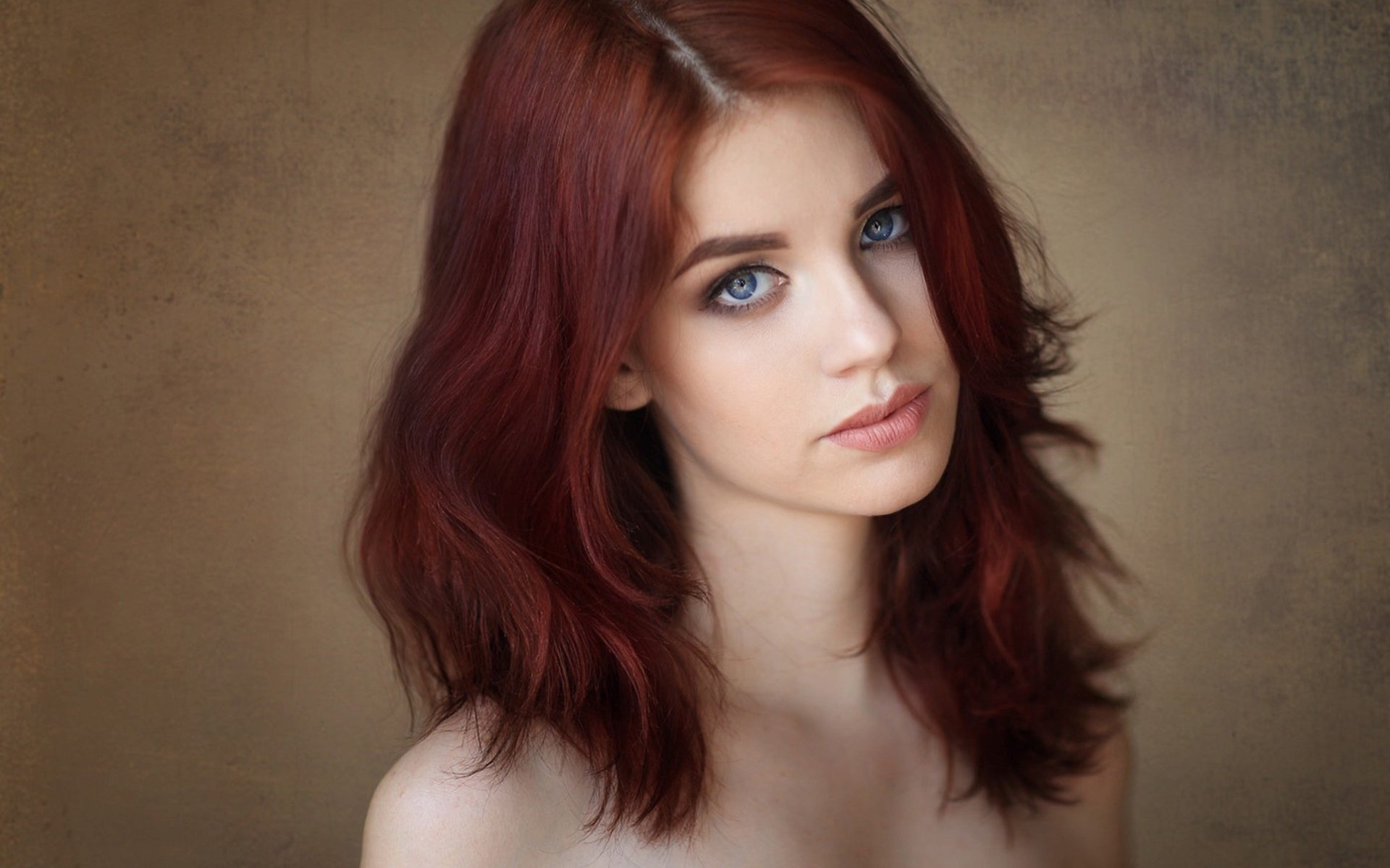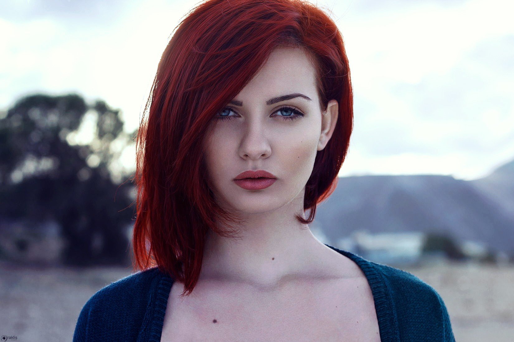Девушка с красными волосами и голубыми глазами