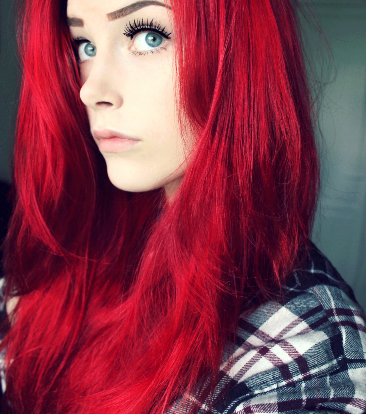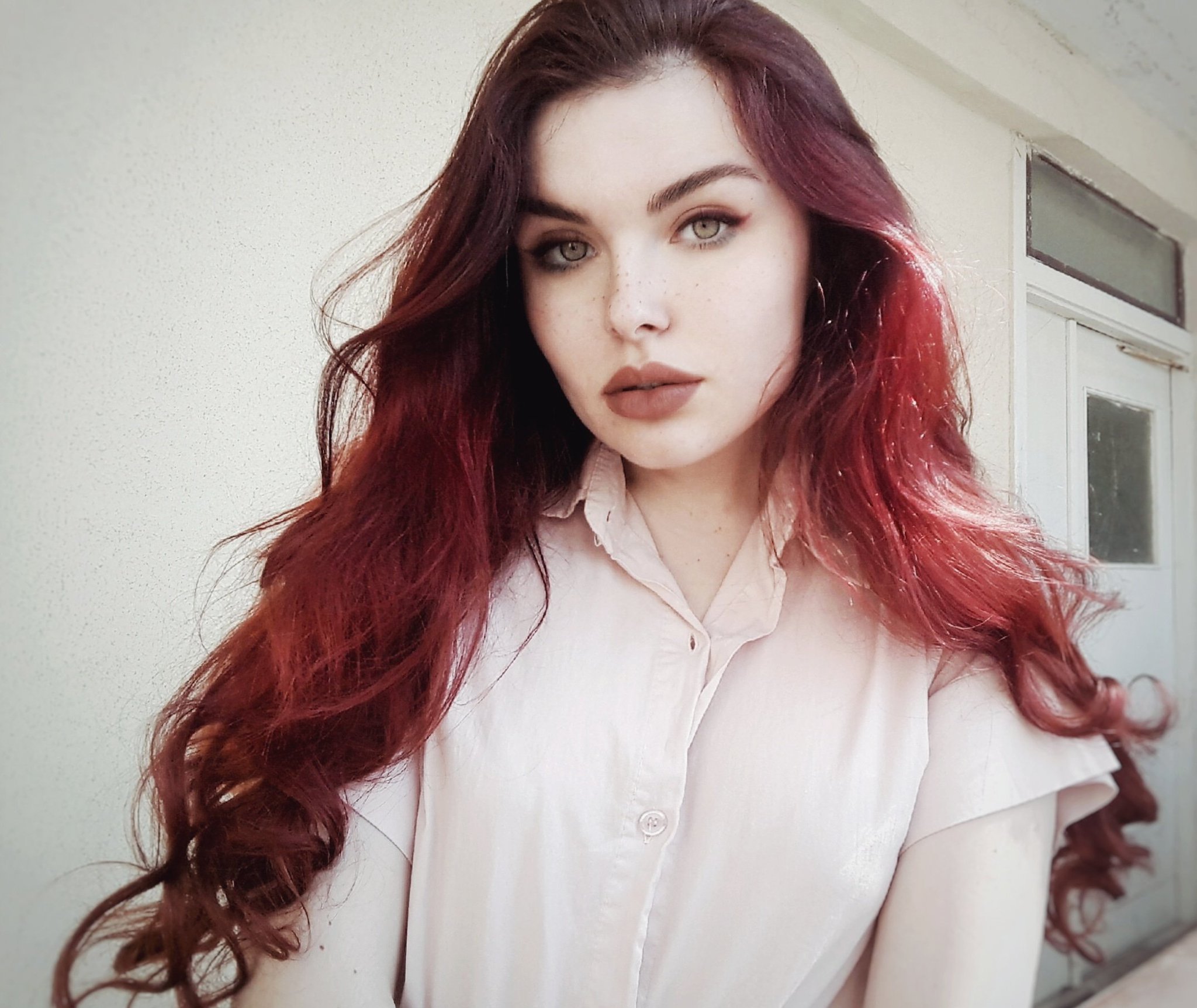 ![Девушка с красными волосами и голубыми глазами]()