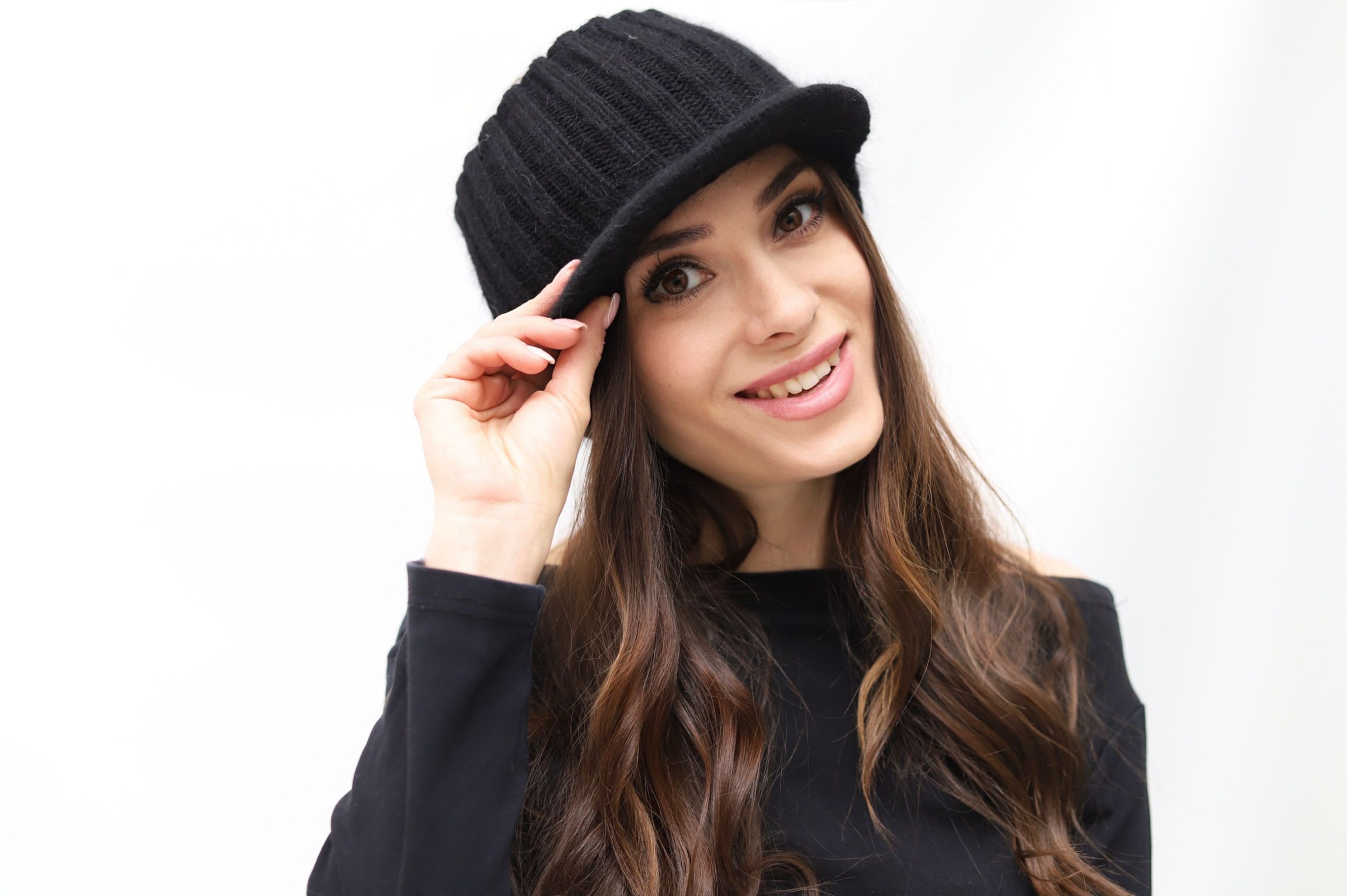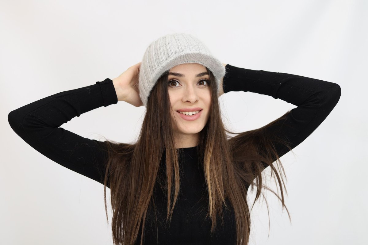 Вязаная шапка с козырьком