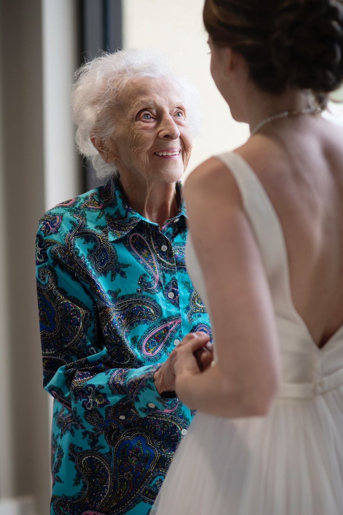На фоне праздничного декора и сияющих улыбок молодых, бабушка предстает великолепной хранительницей семейных традиций и символом преходящего времени. В ее глазах видно, что она радуется каждому мгновению этого особого дня, будучи свидетелем любви и счастья, которые не имеют возрастных границ.