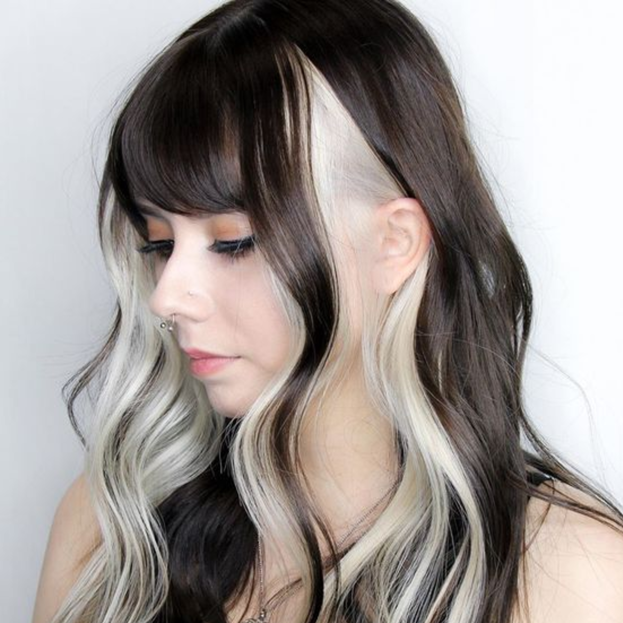 Чёрные волосы с белыми прядями