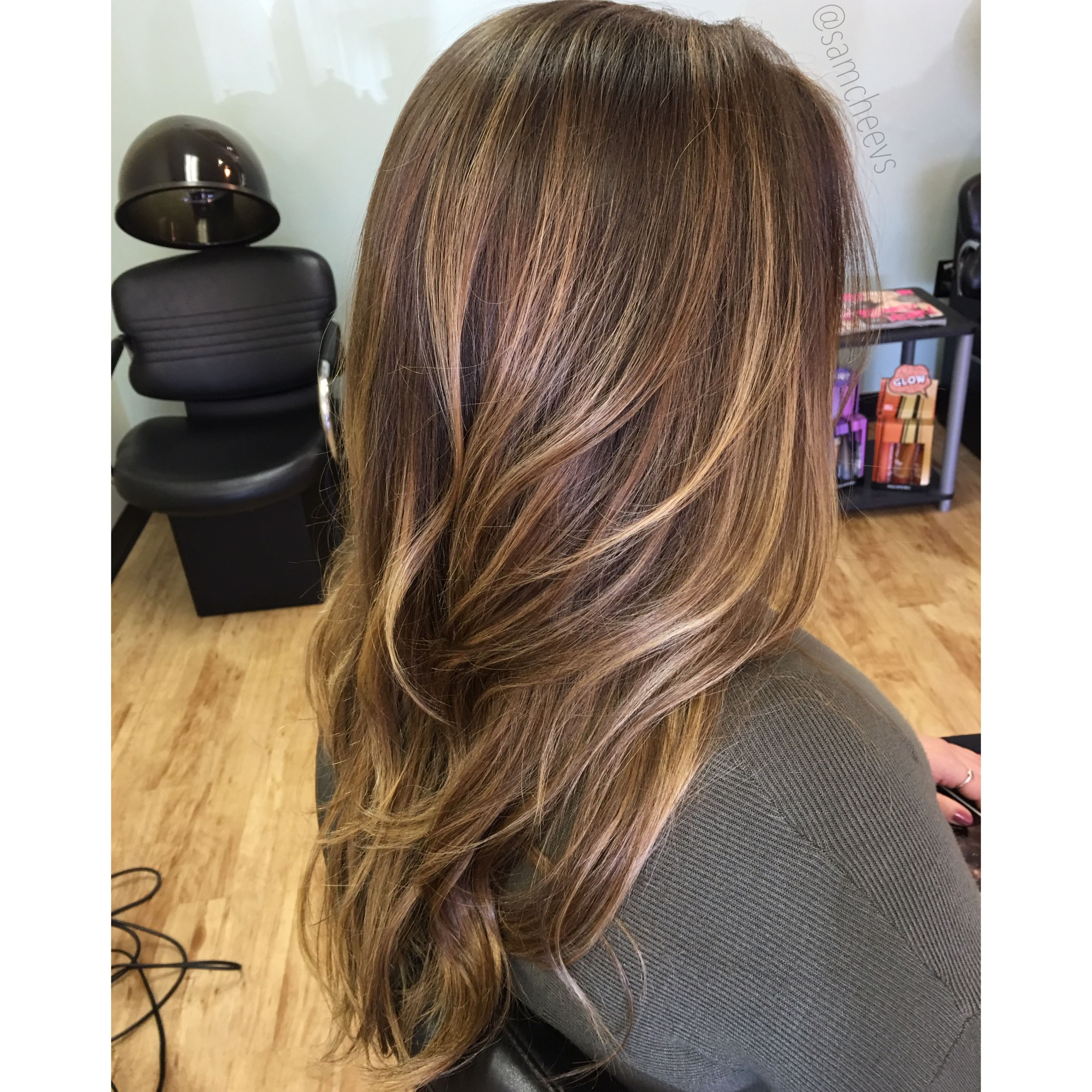 Мелирование балаяж на темные длинные волосы